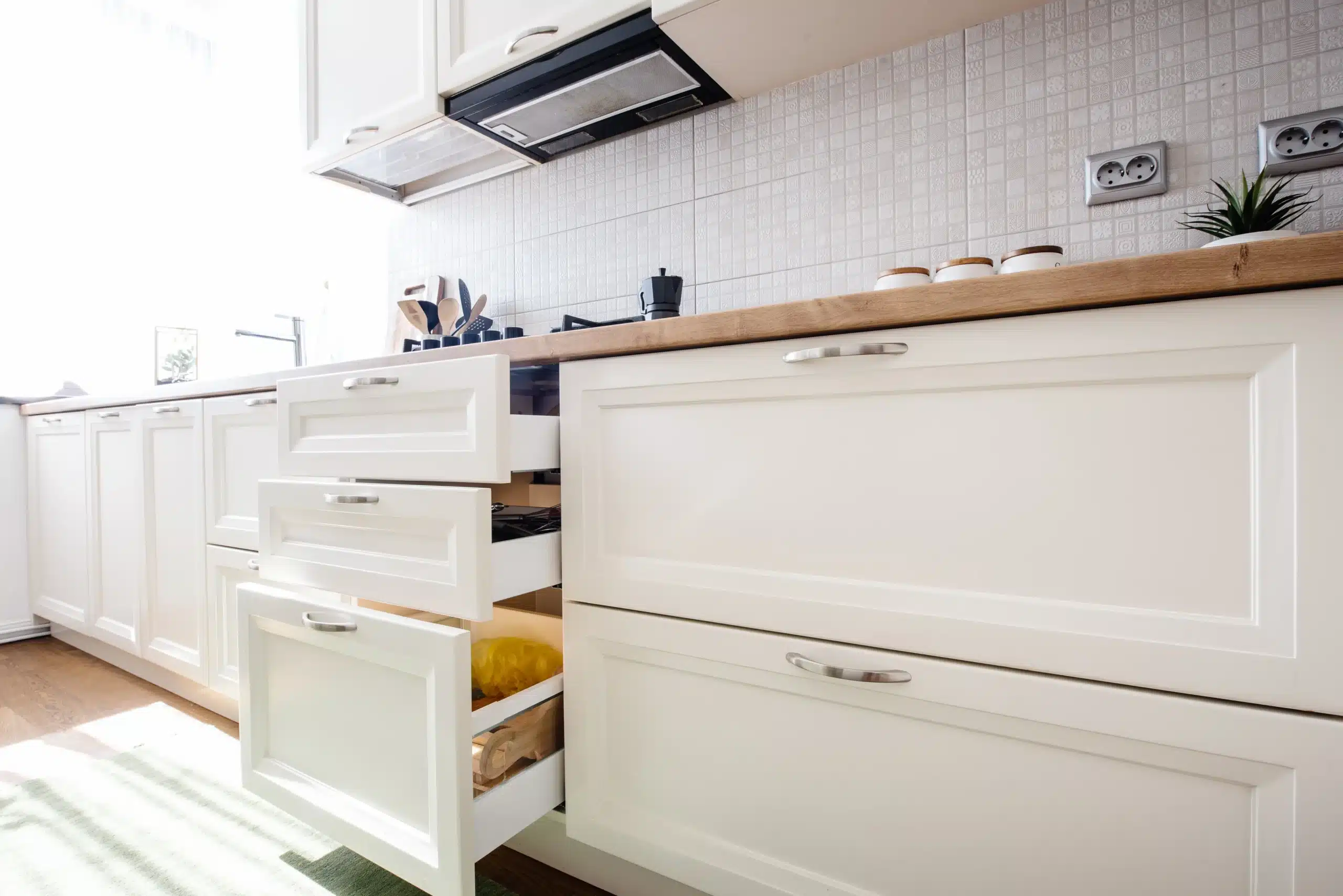 Enhance your kitchen with hardware designed for added convenience, such as soft-close drawer glides, under-sink organizers, or waste and recycling pull-outs. These small but powerful details elevate everyday living and bring long-lasting value to your kitchen design.