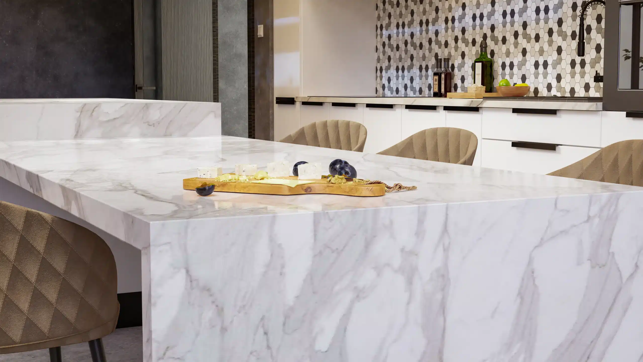 With its timeless veining and elegant patterns, marble has long been prized for its artistry and sophistication. Each slab is unique, bringing a one-of-a-kind beauty to kitchens, baths, and living spaces. Though softer than other stones, marble’s natural luxury and visual appeal make it a stunning design feature.